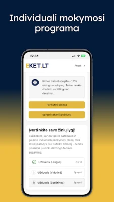 EKET Bilietai 2026 KET Testai aitab teil hõlpsasti ja stressivabalt Regitra eksamiks valmistuda. See on nagu isiklik õpetaja, mis kohandub teie tempoga, pakkudes simuleeritud teste, üksikasjalikke selgitusi ja nutikat algoritmi, et saaksite eksami esimesel korral edukalt läbida.