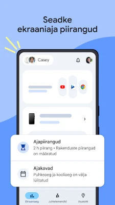 Kaasaegses digitaalses maailmas on oluline leida tasakaal laste ekraaniaja ja muu tegevuse vahel. Family Link annab vanematele nutikad tööriistad, et luua tervislikud digitaalsed piirid ja harjumused. Määratlege hõlpsalt, kui kaua teie laps seadet kasutada saab, seades kohandatavad päevased ajapiirangud ning luues spetsiaalsed ajakavad kooli- ja puhkeperioodideks. Lisaks saate detailidesse laskuda rakenduste haldusesse: andke harivatele või sageli kasutatavatele rakendustele vaba voli või seadke piiranguid üksikutele programmidele, blokeerides vajadusel sobimatud valikud.