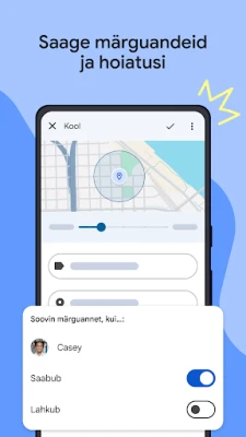 Püsige oma perega ühenduses, kus iganes nad ka poleks. Family Link võimaldab teil kaardil näha oma lapse asukohta, pakkudes mugavat ülevaadet nende tegemistest. Saate koheseid märguandeid, kui laps jõuab eelmääratud asukohta või lahkub sealt, andes teile olulist infot nende liikumise kohta. Kui seade peaks kaduma või te lihtsalt ei leia seda üles, saate Family Linki abil selle helisema panna. Samuti on teil võimalus jälgida seadme aku laetust, tagades, et lapse seade on alati töövalmis ja temaga saab ühendust.