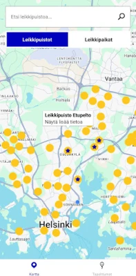 Avasta Helsingis üle 260 mänguväljaku ja -paiga mugavalt kaardil. Vaata iga koha detailset infot varustuse kohta, märgi oma lemmikud ning võta vastu väljakutse avastada kõik linna mängukohad.