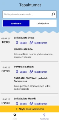 See rakendus koondab põhjaliku ülevaate kõigist leikkipuistude ja peremajade korraldatavatest sündmustest, alates loomingulistest töötubadest kuni mänguliste sporditegevusteni. Detailne sündmuste kalender tagab, et olete alati kursis viimaste pakkumistega. Rakendus tugineb Helsingin kaupungin ametlikele andmeallikatele, integreerides sujuvalt linna teenuste kaardi ja sündmuste kalendri informatsiooni. See tagab andmete usaldusväärsuse ja ajakohasuse, pakkudes teile täpset teavet iga tegevuse kohta.