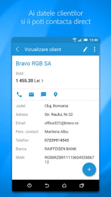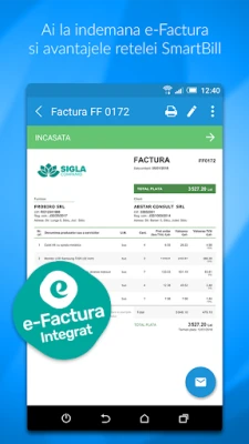 SmartBill pakub tipptasemel e-arvete integratsiooni, mis garanteerib, et sinu digitaalsed arved valideeritakse peaaegu veatult ja kiiresti, säästes sinu aega ja välistades ebakõlad. Saa koheselt ülevaade oma ettevõtte finantsseisust detailsete aruannetega, mis hõlmavad arveldatud summasid, laekumisi ja maksetähtaegu, võimaldades sul teha alati teadlikke otsuseid. Lisaks hoia ühendust oma klientidega otse rakendusest, saates neile e-kirju või helistades – kõik ühest mugavast keskkonnast. Kui kasutad ka teisi SmartBilli tooteid, näiteks SmartBill Conta, sünkroniseeruvad kõik andmed reaalajas, pakkudes terviklikku ja ajakohast finantspilti.