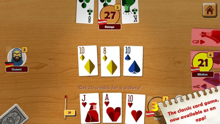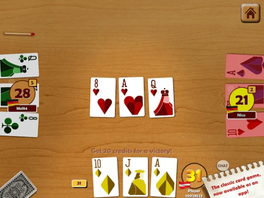 Mängu süda peitub selle kiiretempolises ja kergesti omandatavas dünaamikas. Iga voor algab kolme kaardiga ja kuni kolme eluga, kus strateegilised otsused on võidu võti. Valige nelja taktikalise käigu vahel: vahetage üks kaart lauakeskelt, vahetage kogu oma käsi keskel olevate kaartidega, passige, kui olete rahul, või „koputage", andes märku viimasest voorust. Kaartide punktisüsteem on intuitiivne – sama masti kaardid annavad punkte, pildikaardid on väärt 10 ja ässad 11. Eesmärgiks on alati 31 punkti, vältides madalaimat kätt, mis maksab teile elu.